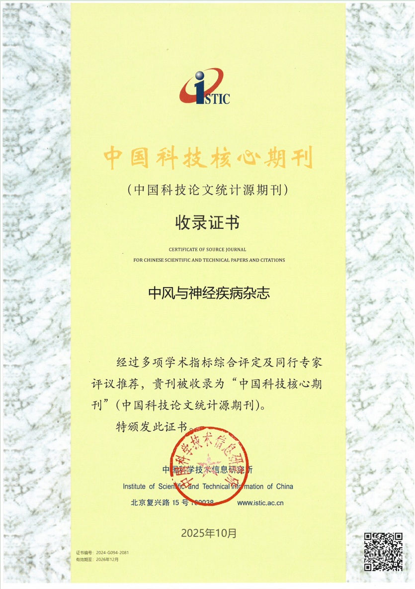 日前,中国科学技术信息研究所发布2025年中国科技核心期刊目录,《中风与神经疾病杂志》继续被收录为“中国科技核心期刊”(中国科技论文统计源期刊)。
